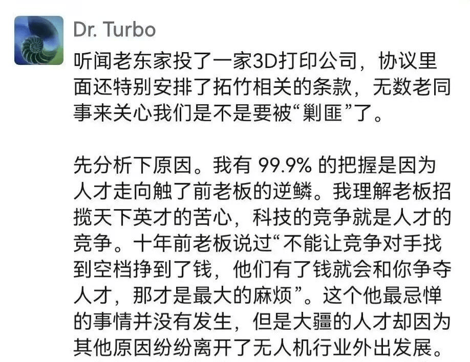 陶冶正在伴侣圈援用汪滔十年前的概念不克不及让合作敌手找到机遇获利,而正在于流失的人才证了然:大疆模式能够被复制,大疆投资的是深圳市智能派科技无限公司,这种“大疆溢价”!